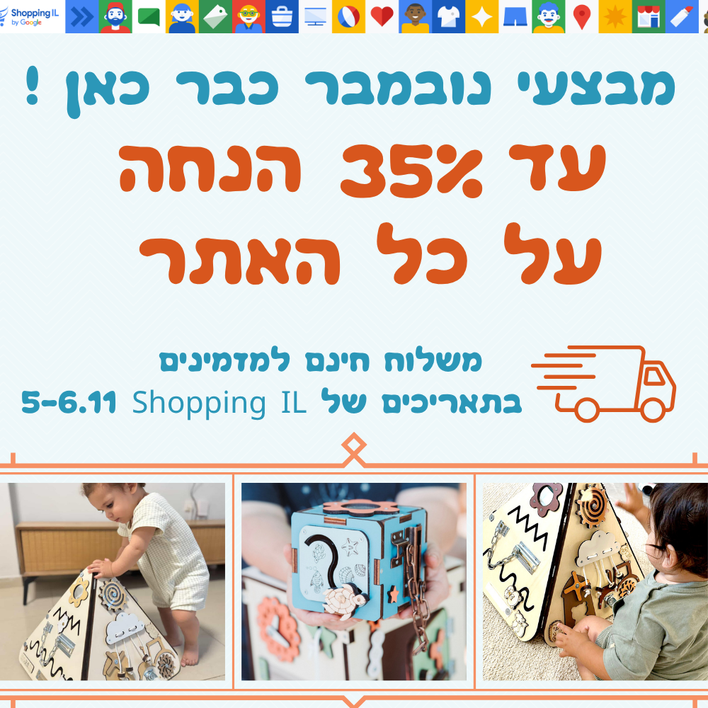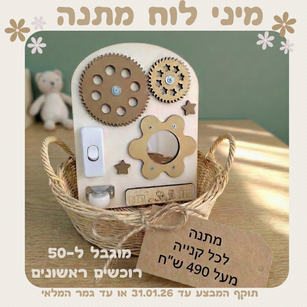 רוב המוצרים שלנו מתאימים במיוחד לגילאי שנה עד שנתיים, עם דגש על פיתוח חושי ומוטורי. אם יש התלבטות – נשמח לעזור בבחירה.