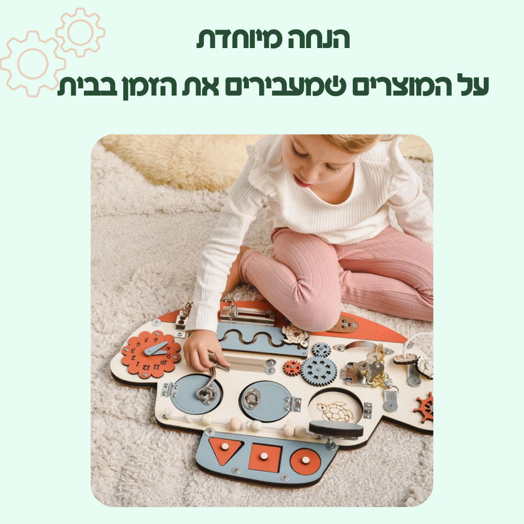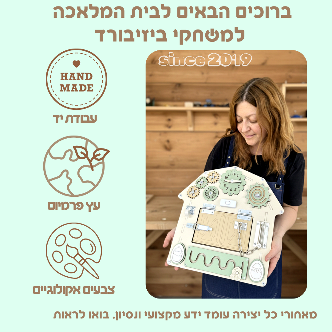 אני מאיה, בוגרת קורס לפיתוח צעצועים בשנקר, אמא לילדה מיוחדת שהיא ההשראה שלי, ובעלת ניסיון של שנים בעבודת עץ מדויקת. כל מוצר נבנה מתוך חשיבה על התפתחות הילד, ובאהבה אמיתית. יש לי רקע בתור אחות טיפת חלב וידע נרחב בתחום התפתחות הילד.
